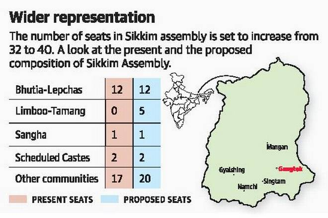 - The Home Ministry has proposed an increase in the number of seats in the Sikkim Assembly from 32 to 40. The expansion will be the first since the State merged with India in 1975.