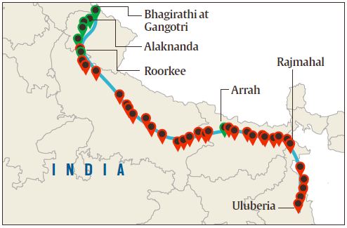 - It has dotted the length of the Ganga with red markers on a map after the National Green Tribunal had asked it to display a prominent map showing where the river water was fit for bathing and drinking.