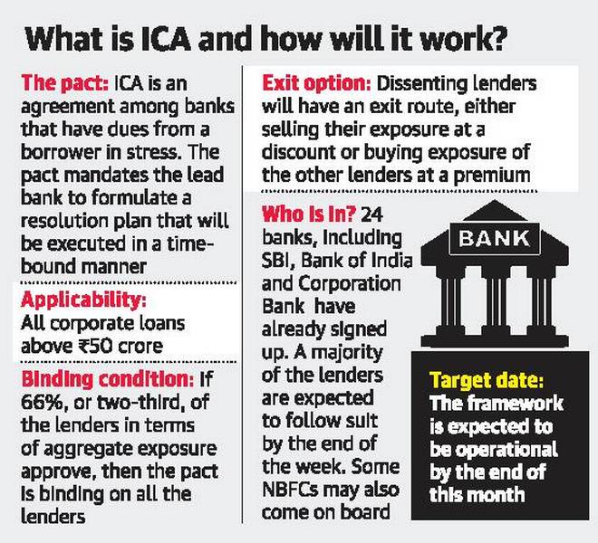 - The agreement, known as Inter-Creditor Agreement (ICA) was framed under the aegis of the Indian Banks’ Association and follows the recommendations of the Sunil Mehta Committee on stressed asset resolution.
