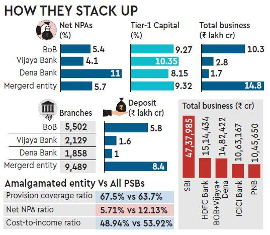 - So the idea is to merge the weaker bank with stronger bank (BoB and Vijaya Bank) so that it would be a strong competitive bank with economies of scale.
