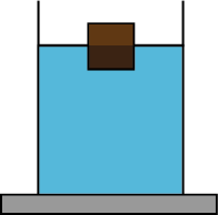 As shown in the figure, the block floats with half of it inside the water. If the block is now immersed in oil, the block will have ____.