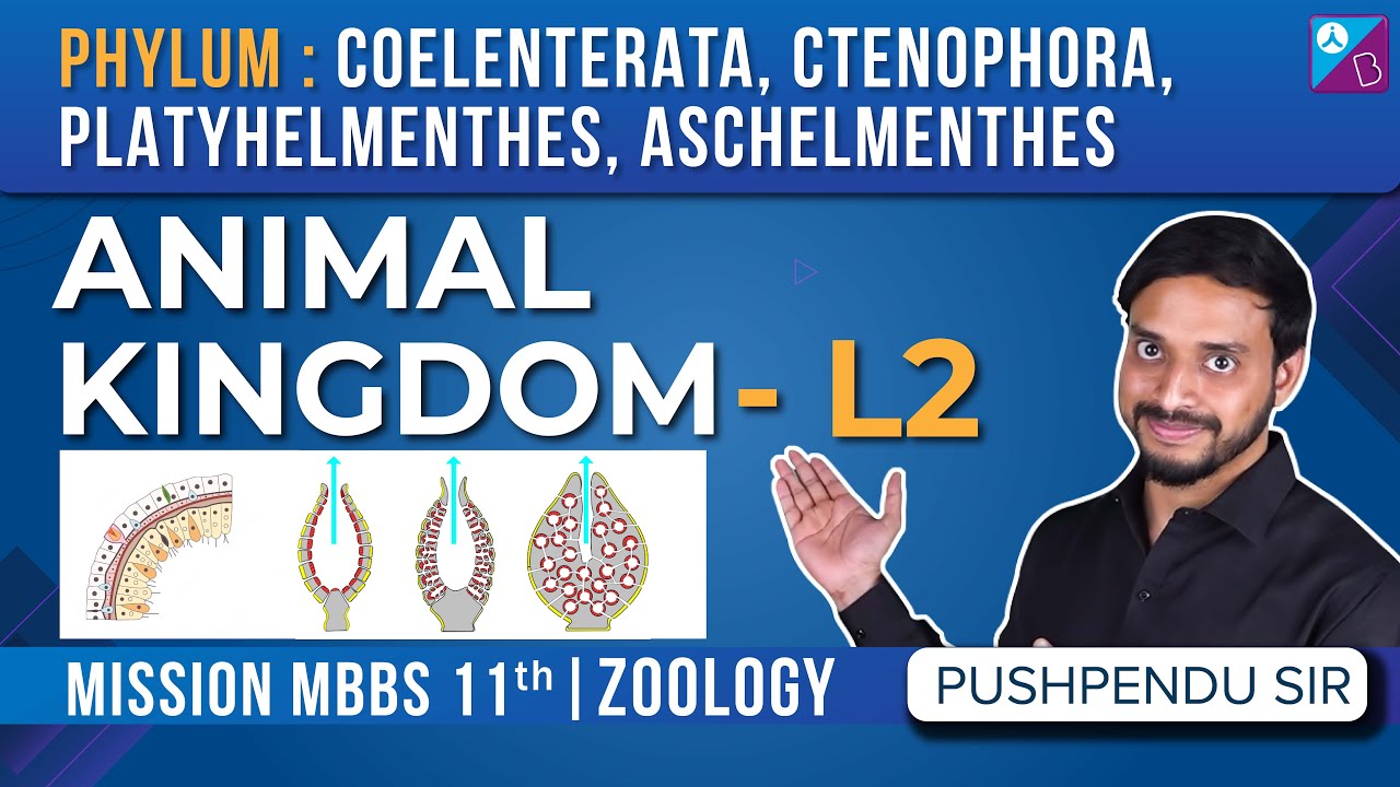 The broad classification of Kingdom Animalia into Vertebrates and Invertebrates further leads to many divisions. There are several phyla under Invertebrates, two of the most primitive being Phylum Coelenterate and Platyhelminthes.
